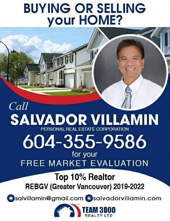 Salvador Villamin is a highly regarded real estate professional serving the Greater Vancouver and Fraser Valley areas, offering personalized service to both buyers and sellers. With a proven track record that includes being recognized among the Top 10% Realtors in the region, he provides reliable market insights and expert guidance. Committed to exceptional client service, he offers free market evaluations and strategic advice to help clients make confident real estate decisions.
